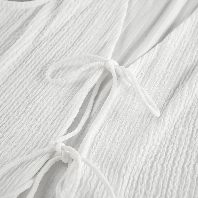 Lace-Up Crop Vest – V-neck with pleated accents and a flirty tie-front design