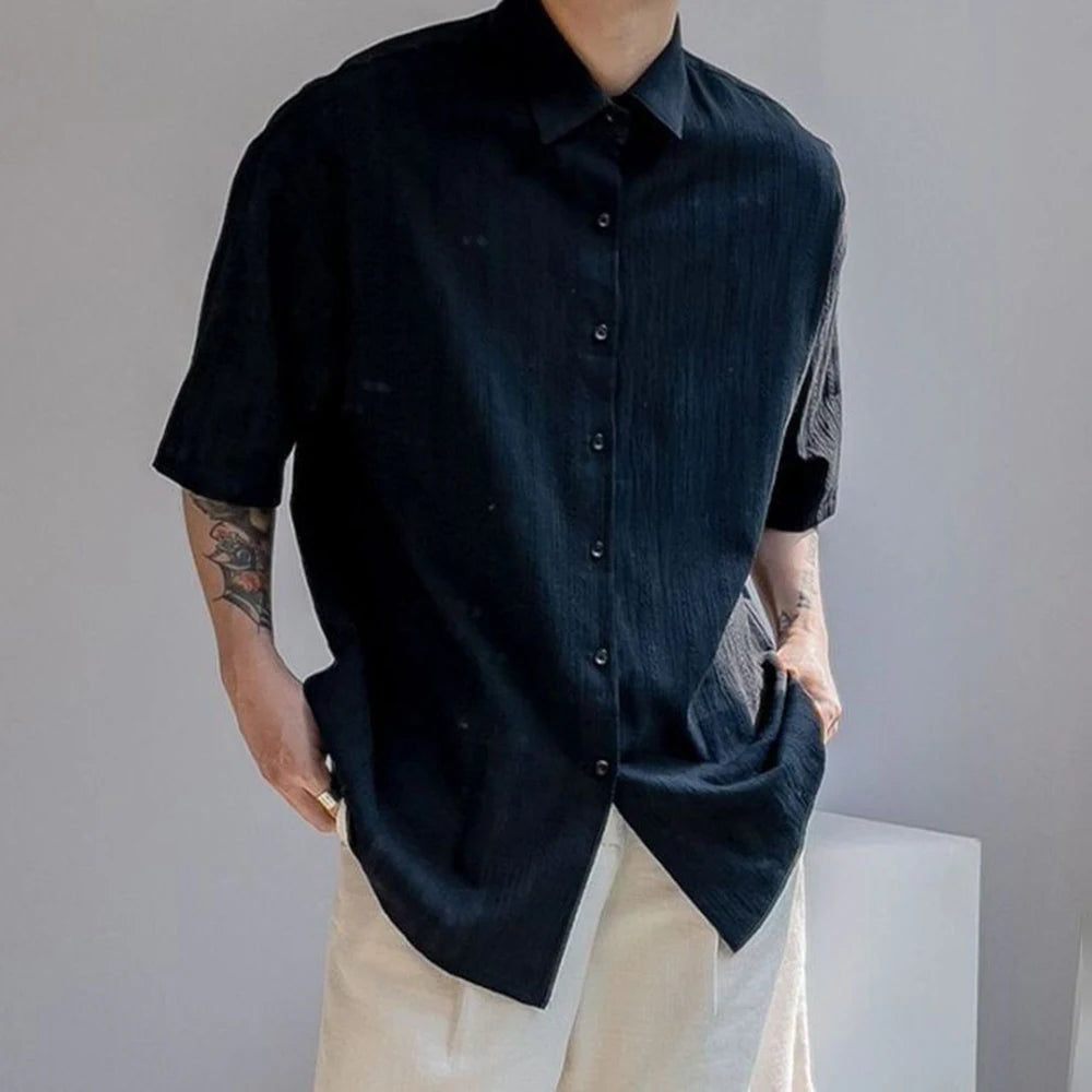 Designed for effortless comfort and style, the SeoulEase Jacquard Shirt by DRESS like US brings soft structure and breathability into your summer wardrobe. Inspired by minimalist Korean fashion, this solid-color piece features a subtle jacquard weave, classic turn-down collar, and a relaxed fit perfect for warm days, laid-back evenings, or resort travel.