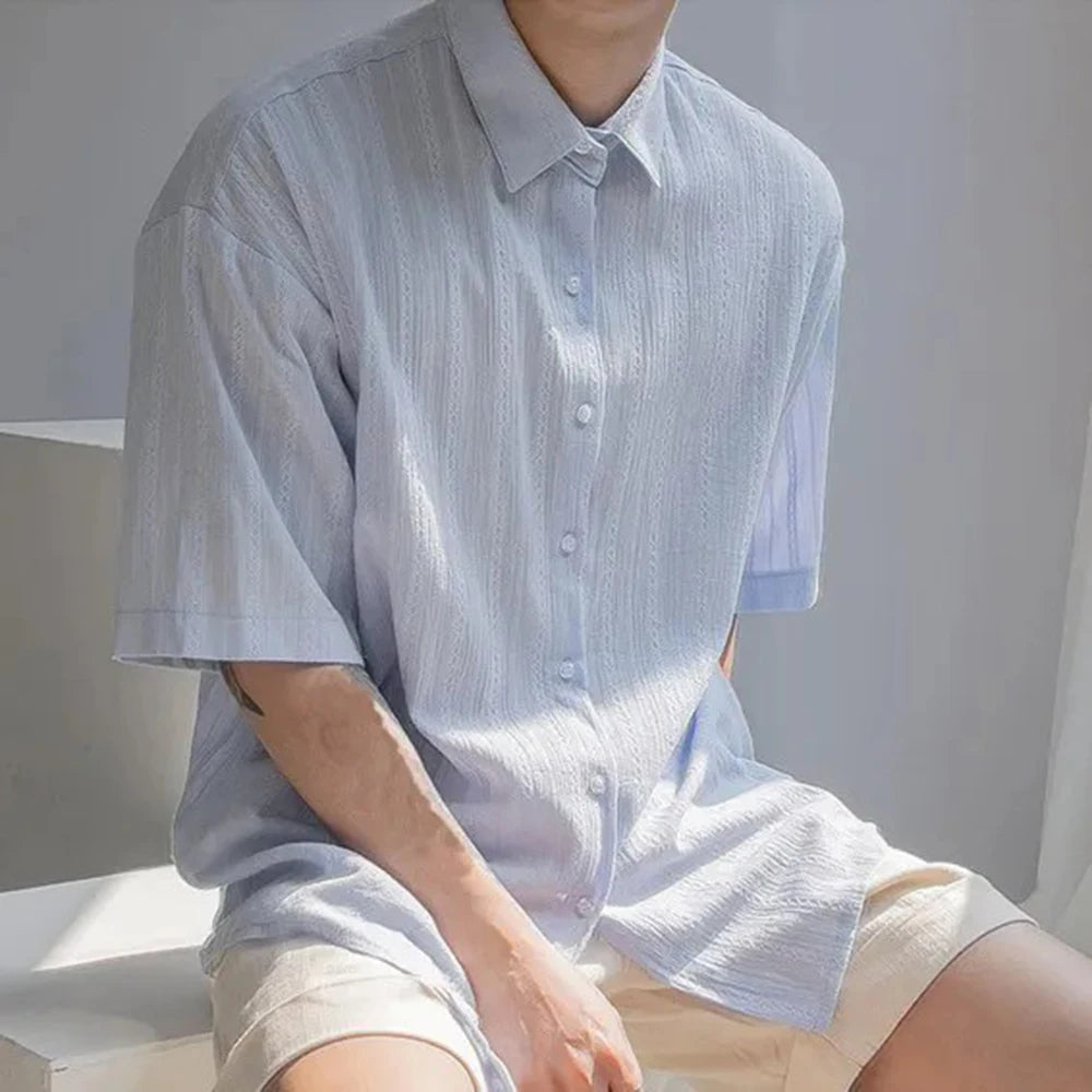 DRESS like US™ SeoulEase Jacquard Shirt – Korean-Inspired Summer Casual Top for Men