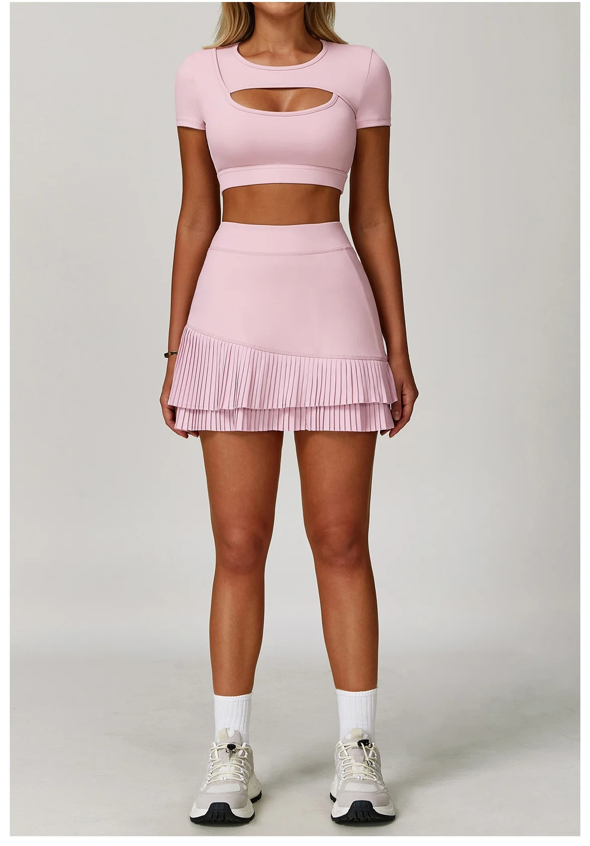 Minimalist in form, powerful in function — the ZenStyle Active Set features a breathable short-sleeve performance top and your choice of sculpting high-rise leggings or a stretch skirt. Engineered in a quick-dry nylon-spandex blend, it flows seamlessly from yoga to daily errands, offering lasting comfort, clean lines, and all-season wearability.