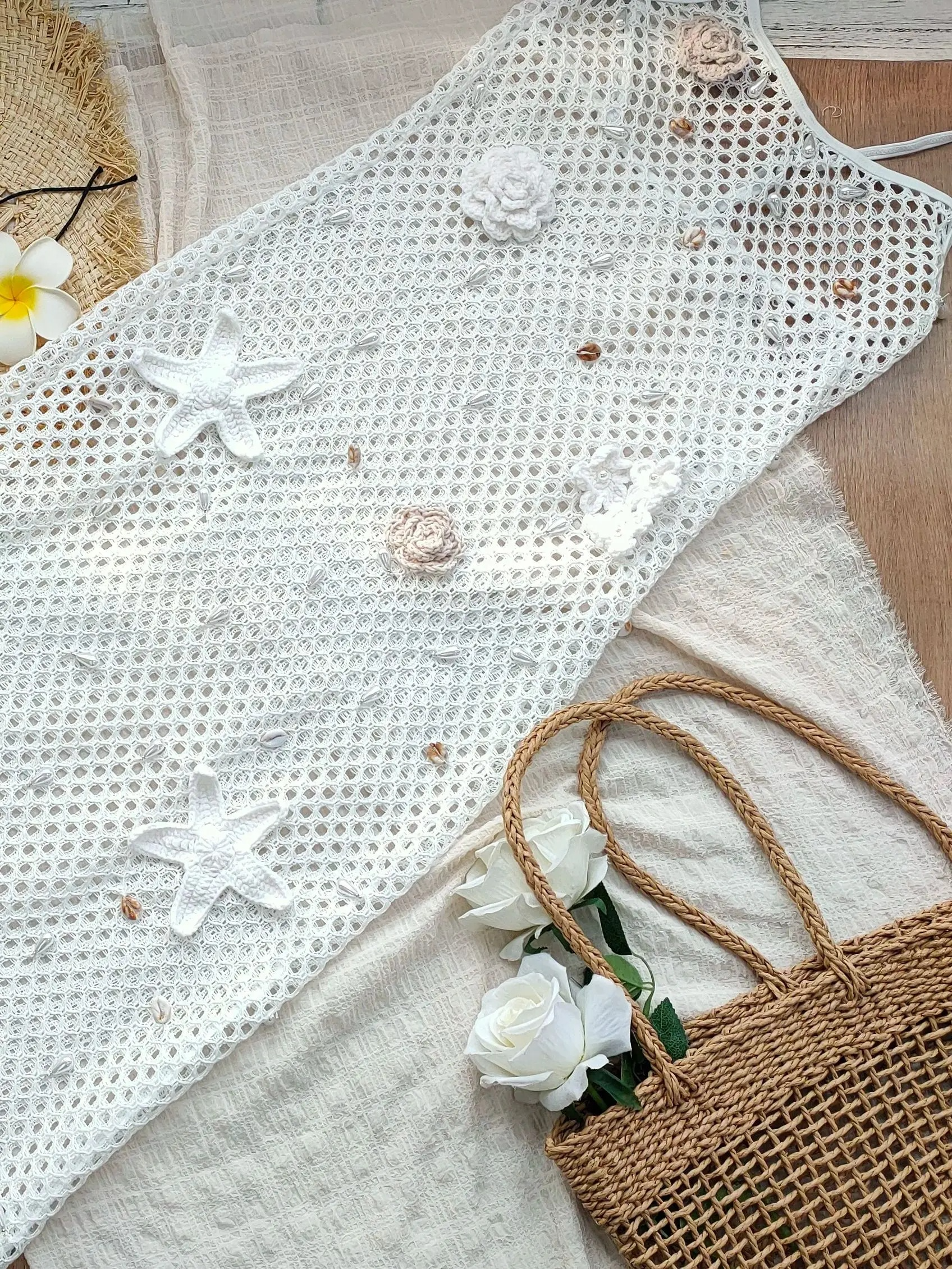 Radiate elegance and allure with the PearlBloom 3D Knit Floral Dress – a show-stopping summer piece crafted with delicate pearl accents, 3D knit florals, and soft tassel details. Whether worn as a beach cover-up or a sultry evening look, this sleeveless dress turns heads from poolside to party.