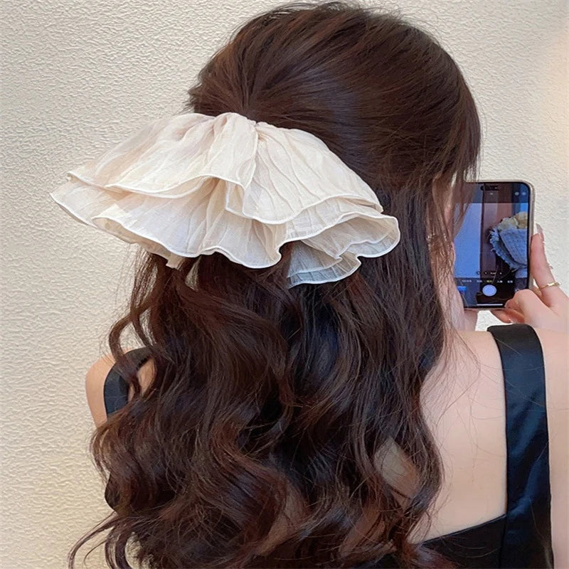 Elevate everyday hairstyles with this oversized, handmade crepe mesh scrunchie — designed to add volume, texture, and charm to your look. Whether wrapped around a messy bun or securing a high ponytail, this fashion-forward accessory brings softness and structure in one seamless twist.