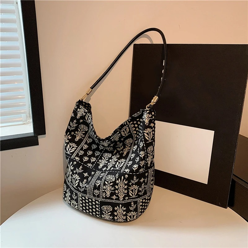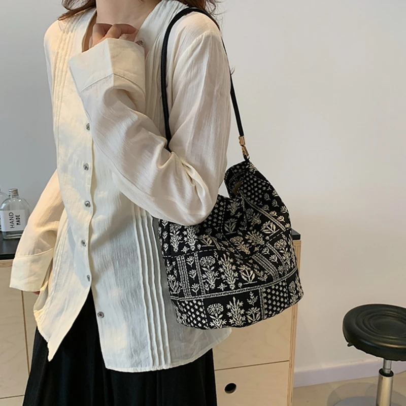 DRESS like US™ Sienna Cotton Bucket Bag – Floral Boho Shoulder Tote