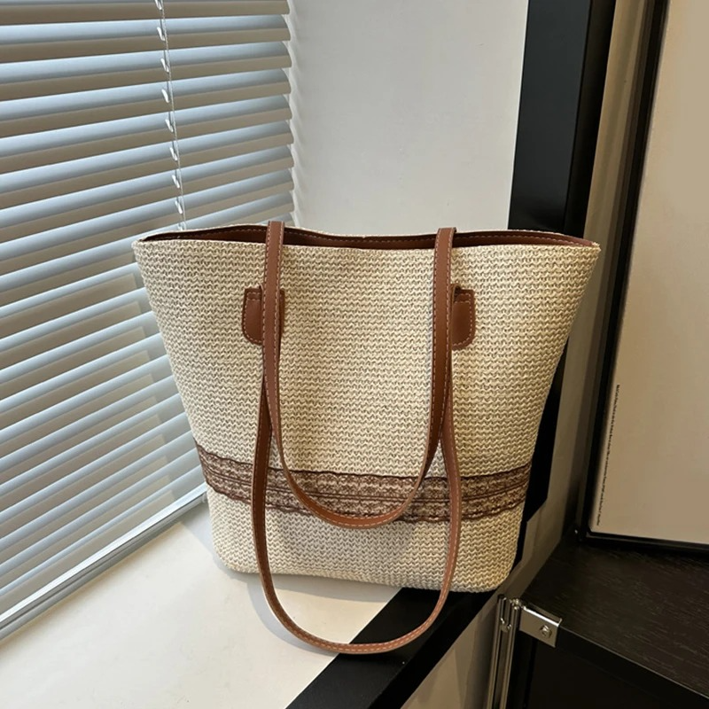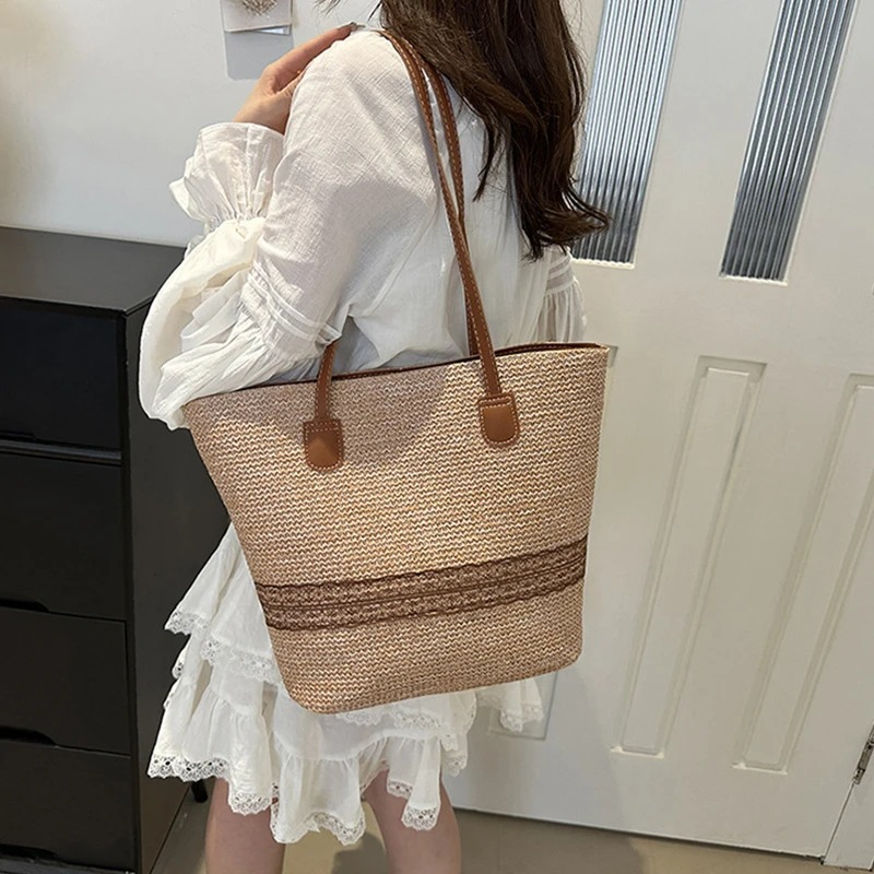 DRESS like US™ Bella Straw Beach Tote – Large Woven Shoulder Bag for Summer Travel & Coastal Adventures