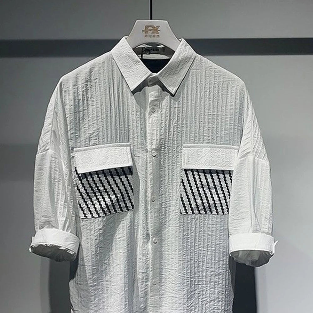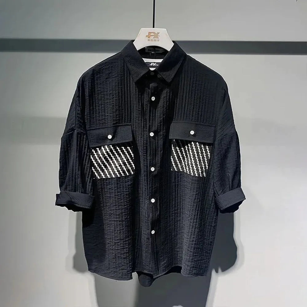 Break the mold with the Tokyo Street Y2K Shirt – Men’s Striped Sequin Shirt by DRESS like US. This statement piece is a bold fusion of retro-future energy and Japanese streetwear design. With asymmetrical stripes, sequin tassels, and a casual short-sleeve cut, it's perfect for summer nights, music festivals, or standout street style looks.
